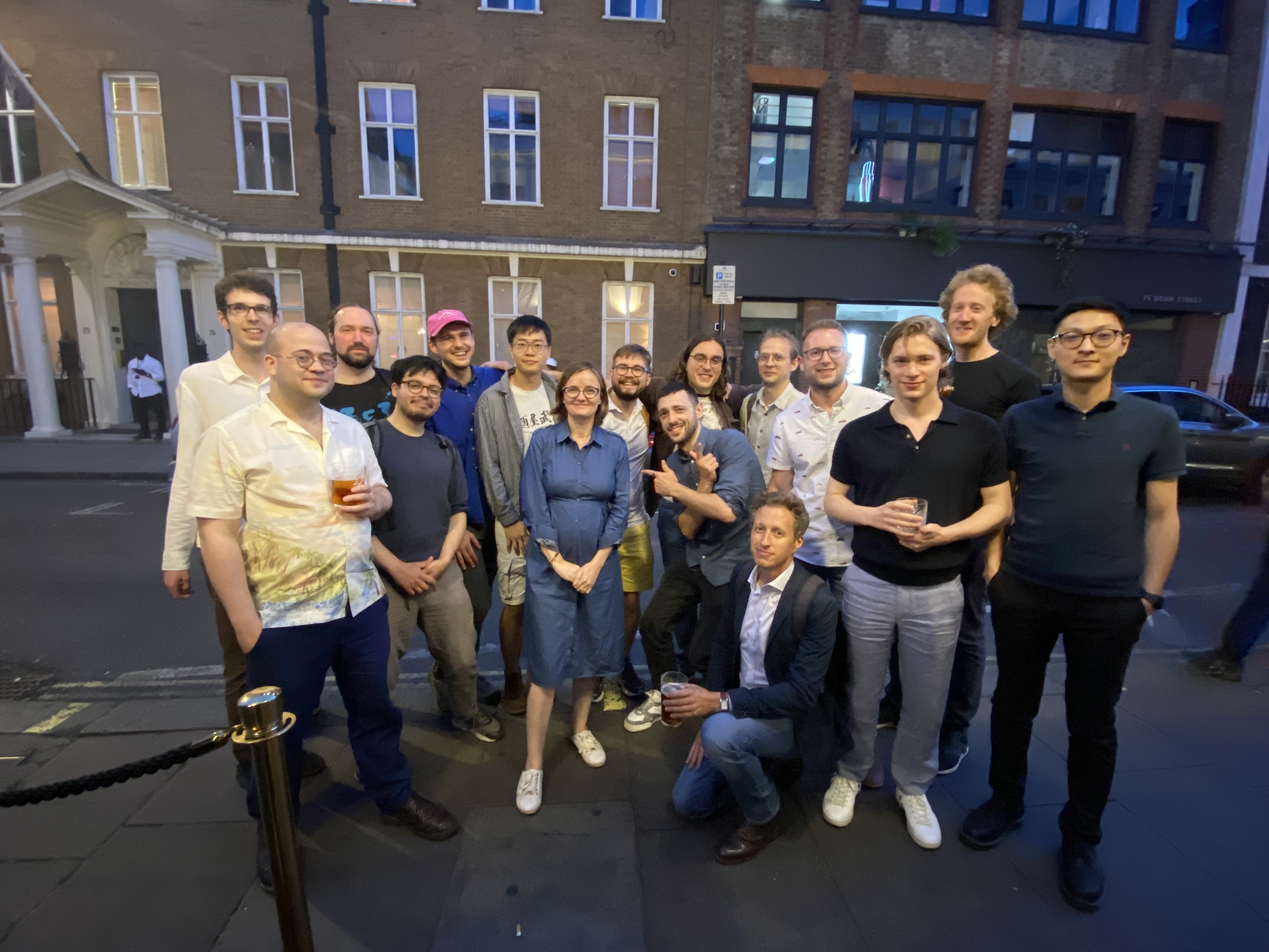 Research GroupI am very fortunate to collaborate with an amazing group of students and post-docs.PhD Students Tiago Ferreira Spencer van Koevering Mark Moeller Wojciech Rozowski William Smith Mateo Torres-Ruiz Linpeng Zhang Noam ZilbersteinPostdocs Sam Coward Daniel Luckhardt Cheng Zhang Kevin Batz Robin Piedeleu Jules JacobsUndergraduate and Master Students Thomas LuAlumni Thibaut Antoine Paul Brunet Georgiana Caltais Fredrik Dahlqvist Simon Docherty Tao Gu Léo Henry Justin Hsu Tobias Kappé Heidy Khlaaf James Li Sonia Marin Joshua Moerman Young-Joo Moon Louis Parlant Daniela Petrisan Jurriaan Rot Angelina Saliling Matteo Sammartino Todd Schmid Raquel Silva Alaia Solko-Breslin Jana Wagemaker Sean Wang Jacob Wasserstein Bas Westerbaan Andrey Yao Stefan ZetzscheThrough The Years Christmas Bowling 2016 Group Photo March 2017 June 2017 Christmas Drinks 2017 At the End of Alexandra's Inaugural 2018 Escape Room 2018 Christmas Dinner 2019 July 2019 Picnic Summer 2021 Reunion London 2023 Escape Room 2024 Christmas Dinner 2024 Group Photo at Bellairs 2025 Honorary Members Baby Brunet Baby Zanasi Baby Silva Baby Brunet 2, Zanasi 2 & Silva Brunet (1,2), Zanasi (1,2) & Silva Baby Silva 2